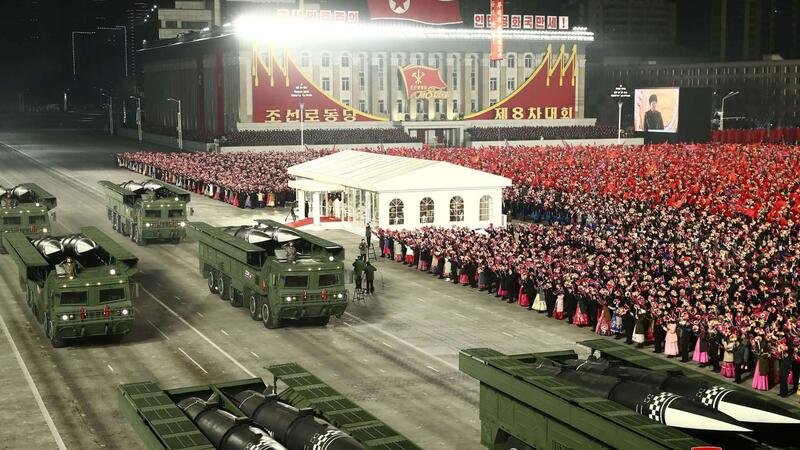 قالت وسائل إعلام رسمية إن كوريا الشمالية كشفت خلال عرض عسكري مساء يوم الخميس ما بدا أنها صواريخ باليستية تطلقها الغواصات، لتتوج بذلك بيونغيانغ اجتماعات سياسية استمرت لأكثر من أسبوع باستعراض لقوتها العسكرية.
