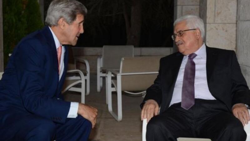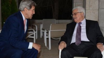 وزير الخارجية الاميركي جون كيري (يسار) والرئيس الفلسطيني محمود عباس