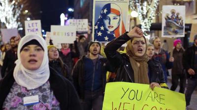 وطالب المتظاهرون ترامب بالتراجع عن أمره التنفيذي. وقال زعيم الاقلية الديمقراطية تشاك شومر إن أمر ترامب التنفيذي “سيجعل البلاد أقل أمناً وأقل أمريكية”، في إشارة إلى أن هذا القرار يتعارض مع مبادئ الدستور الأمريكي التي تكفل “الحرية والعدل للجميع″.
