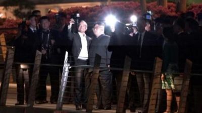 قام الزعيم الكوري الشمالي كيم جونغ اون الاثنين بنزهة ليلية لافتة في سنغافورة، ترافقت مع صور سلفي وجولة في المدينة طاردتها كاميرات المصورين على وقع هتافات المارة امام فندقه.