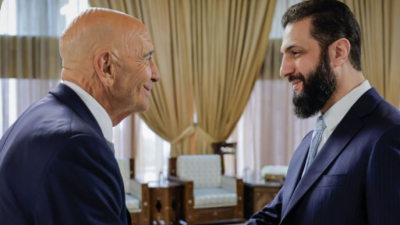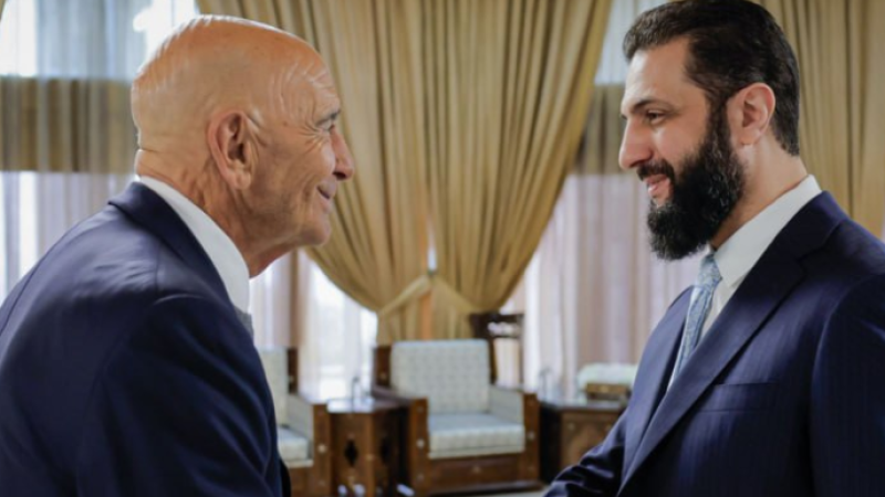 شهدت العاصمة دمشق، اليوم، لقاءً جمع الرئيس السوري أحمد الشرع بالمبعوث الأمريكي الخاص إلى سوريا توماس باراك، بحضور وزير الخارجية والمغتربين أسعد حسن الشيباني. وشدد الرئيس الشرع خلال اللقاء على تمسك سوريا بوحدتها وسيادتها الكاملة على أراضيها، مؤكداً أن الحوار يشكل ركيزة أساسية في المرحلة الراهنة، وأن إعادة بناء سوريا يجب أن تتم بمشاركة جميع السوريين، مع الاستمرار في تنسيق الجهود المشتركة لمكافحة الإرهاب.