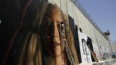 رسمت لوحة جدارية عملاقة للمراهقة الفلسطينية عهد التميمي التي تعتبر رمزا للمقاومة، على جدار الفصل الاسرائيلي في الضفة الغربية المحتلة قبل الافراج عنها من سجن اسرائيلي.