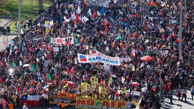 خرج مئات الآلاف من الأشخاص الى شوارع العاصمة سانتياغو دي تشيلي علاوة على مدن اخرى يوم الاحد احتجاجا على نظام التقاعد الخاص في تشيلي.