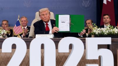 البوابة - وقع أمس الرئيس الأميركي دونالد ترامب والرئيس المصري عبد الفتاح السيسي، وأمير قطر الشيخ تميم بن حمد آل ثاني، والرئيس التركي رجب طيب أردوغان.