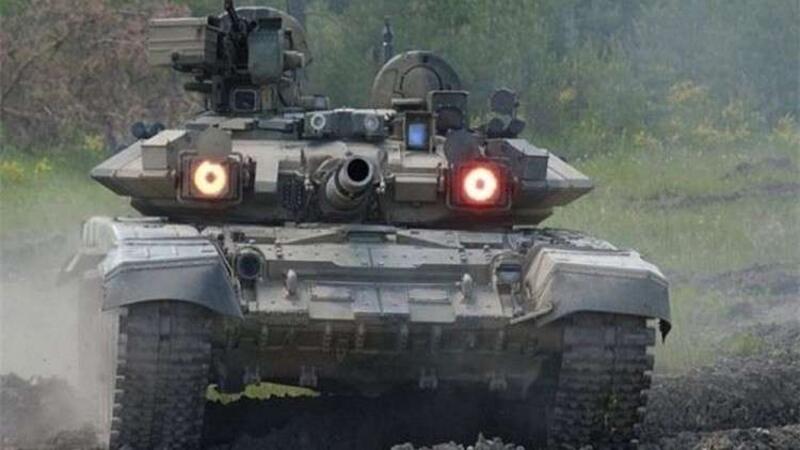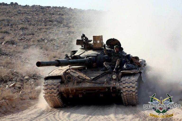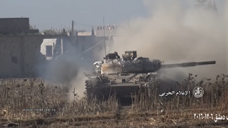 وشوهد التجهيز الجديد على سطح دبابة سورية من نوع "ت-72 أم 1" خلال القتال في مدينة حلب.