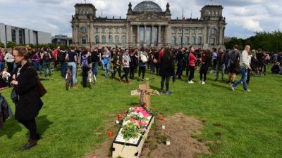 متظاهرون يحفرون قبورا في برلين دعما للمهاجرين