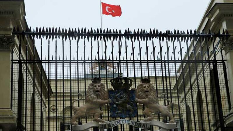 متظاهرون يرفعون العلم التركي فوق القنصلية الهولندية في اسطنبول