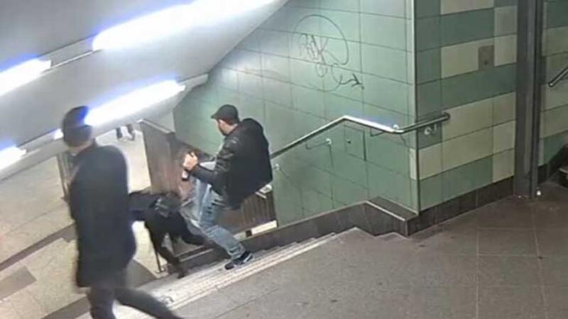 ويظهر المتهم في الفيديو المرفق، وهو يركل المرأة (26 عاماً) التي كانت ترتدي حجاباً، متعمداً، من ظهرها على درج في محطة أنفاق “هيرمان شتراسه”، ما أدى إلى سقوطها من أعلى الدرج. وواصل الجاني بعد ذلك السير مع ثلاثة مرافقين آخرين.