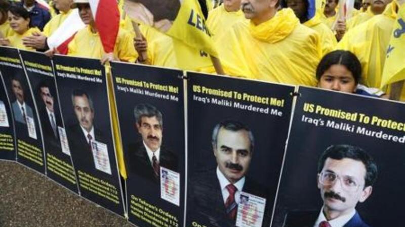 وتسعى منظمة مجاهدي خلق التي رفعتها وزارة الخارجية الأمريكية من قائمتها للمنظمات الإرهابية العام الماضي الي الإطاحة بحكم رجال الدين في إيران وحاربت إلى جانب العراق اثناء الحرب العراقية الإيرانية في الثمانينات.