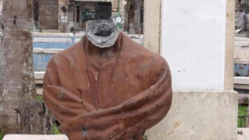 أقدمت على قطع رأس النصب التذكاري للشاعر والفيلسوف والأديب العربي أبو العلاء المعري".