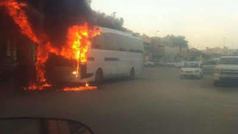 قام 4 من مثيري الشغب بإضرام النار في إحدى حافلات شركة أرامكو السعودية بمحافظة القطيف ذات الاغلبية الشيعية مساء الثلاثاء.