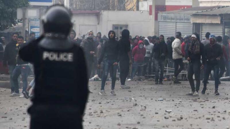 واشتبك محتجون مع رجال الأمن في سوسة وسليانة وأحرقوا إطارات مطاطية كما قطعوا طرقا رئيسية. ودفع الجيش بوحدات عسكرية في بعض المدن لحماية المنشآت العامة من بينها القصرين وقبلي وقليبية.