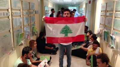 وجلس بعض الناشطين على الارض وادوا النشيد الوطني فيما انزل اخرون اعلاما لبنانية من نوافذ الوزارة الواقعة في وسط بيروت.
