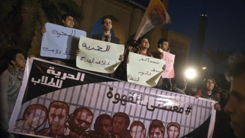 ناشطو حركة 6 ابريل يتظاهرون للمطالبة بالافراج عن الناشطين الموقوفين بسبب التظاهر ضد العسكر في القاهرة في 23 كانون الاول/ديسمبر 2013