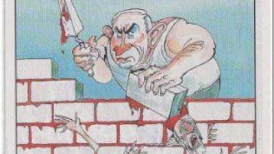 ويشير رسم فنان الكاريكاتير جيرالد سكارف المنشور في العدد الاسبوعي للصحفية إلى الجدار الذي تشيده اسرائيل منذ عشر سنوات في الضفة الغربية. وهو الجدار الذي قضم مئات الاف الدونمات من اراضي المزارعين الفلسطينيين وعزل المدن ومنع اقامة الدولة الفلسطينية القابلة للحياة وهو شرط من شروط السلام