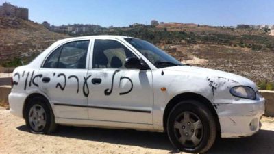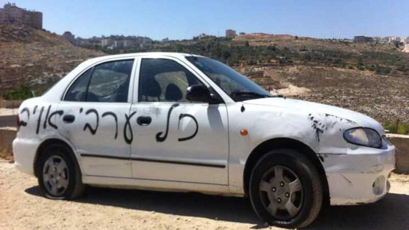مستوطنون يعطبون مركبات فلسطينية ويخطون شعارات عنصرية بالضفة الغربية