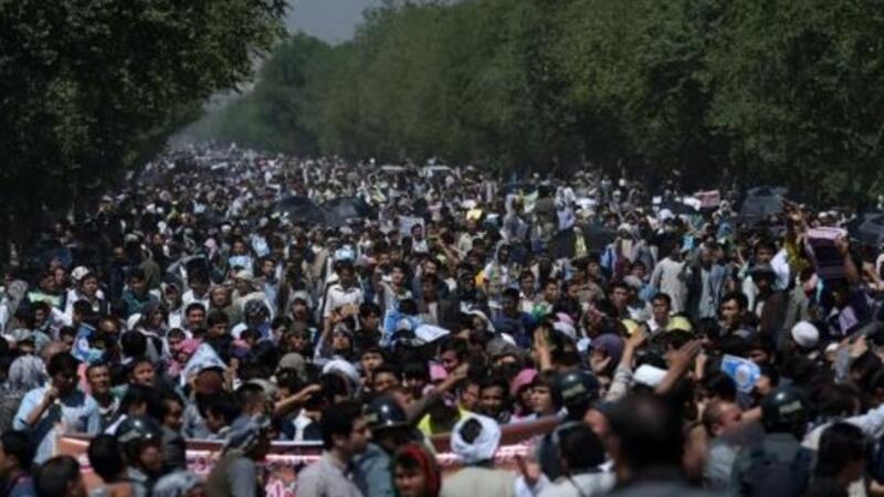 متظاهرون يطالبون بمد مشروع كهرباء الى منطقة اكثريتها من اقلية الهزارة في وسط البلاد، في احتجاجات بكابول