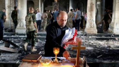 أقام العشرات من المسيحيين العراقيين قداسا في كنيسة الطاهرة الكبرى في بلدة قرة قوش يوم الأحد بين جدران مجللة بالسواد ومذبح مدمر وذلك للمرة الأولى منذ استعادتها من تنظيم الدولة الإسلامية .