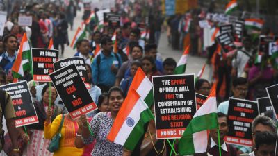 ورفع المتظاهرون لافتات تدعو الى الغاء قانون الجنسية وعملية "تسجيل المواطنين" المقترحة، وساروا عدة كيلومترات انطلاقا من كنيسة إلى تمثال للمهاتما غاندي، بطل استقلال الهند.