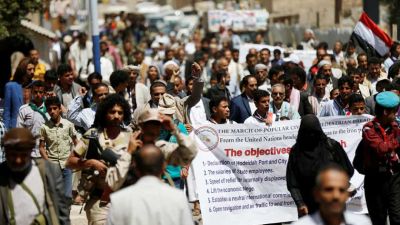 ورفعوا كذلك لافتات تطالب باعلان ميناء مدينة الحديدة، التي يسيطر عليها الحوثيون ايضا، “منطقة انسانية”. كما دعوا إلى تشكيل “لجنة دولية محايدة للتحقيق في جرائم الحرب” التي قتل واصيب فيها الاف الأشخاص.