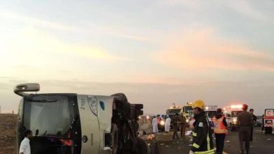 توفي 19 معتمرا، وأصيب 22 آخرون، من الجنسية المصرية، في انقلاب حافلة على الطريق الرابط بين مكة المكرمة والمدينة المنورة، صباح اليوم السبت، فيما تشير التحقيقات الأولية إلى أن سبب الحادث نوم السائق أثناء القيادة.