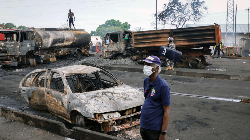 ووقع الانفجار في وقت متأخر من الجمعة، عندما اصطدمت الناقلة بشاحنة أخرى أثناء اقترابها من محطة وقود بالقرب من تقاطع مزدحم في ويلينغتون، شرقي العاصمة فريتاون، وفقا للوكالة المحلية لإدارة الكوارث.