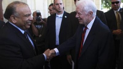 وقال المركز الذي أسسه الرئيس الامريكي الاسبق جيمي كارتر للترويج للسلام والديمقراطية والصحة العامة يوم الثلاثاء انه تسلم الان شارات المراقبة.