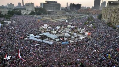 وبقي المحتجون معتصمين في ميدان التحرير بوسط القاهرة ودعا زعماء المحتجين الى مسيرات حاشدة مساء يوم الثلاثاء في مسعى لاجبار مرسي على التنحي.