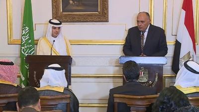 وزير الخارجية المصري سامح شكري ونظيره السعودي عادل الجبير عقب اجتماع في القاهرة الاحد