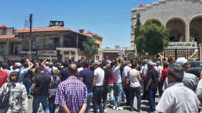 ورفع هؤلاء لافتات طالبت بإسقاط النظام السوري، وأطلقوا شعارات نددوا فيها بـ"سياسات السلطة الفاشلة، التي أدت إلى تدهور حاد في الأوضاع المعيشية".