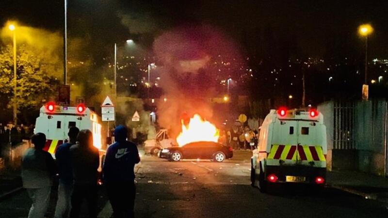 وبعدما دعت الشرطة في وقت سابق إلى الهدوء عندما تم إطلاق عدد من الأعيرة النارية في منطقة كريجان ذات النزعة القومية بالمدينة. وأظهرت صور نشرت على وسائل التواصل الاجتماعي سيارتين تحترقان، وأشخاصا ملثمين يرمون القنابل الحارقة والألعاب النارية على آليات الشرطة.