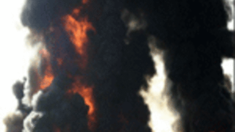 وسارت عربات الهلال الاحمر عبر شوارع مهجورة تطل عليها بنايات مهدمة. وعلت في سماء المدينة سحابة من الدخان الاسود وتردد صوت انفجار واحد على الاقل اثناء الزيارة.