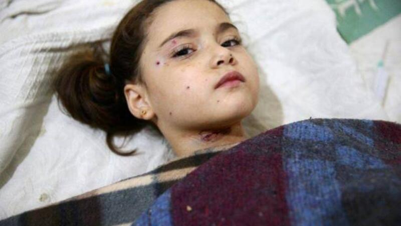 وتظهر في صورة جثة لطفلة ممدة على سرير داخل مشفى ميداني والدماء تغطي وجهها. كذلك، غطت بقع دماء الارض داخل الحضانة قرب العاب للاطفال وحائط عليه رسوم.