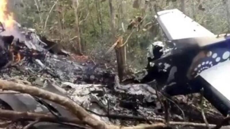 واظهرت صور نشرها هيدالغو على مواقع التواصل قطعاً من هيكل الطائرة المشتعل منتشرة في احدى الغابات.