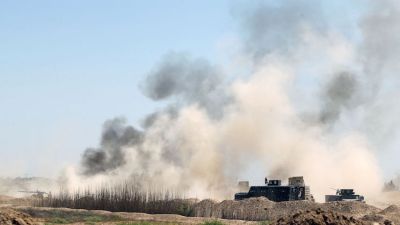 وتحدث العامري وهو يرتدي الملابس العسكرية للتلفزيون الرسمي من موقع العمليات بينما كان رئيس الوزراء حيدر العبادي يقف إلى جانبه وهو يرتدي زي قوات مكافحة الإرهاب العراقية الأسود.