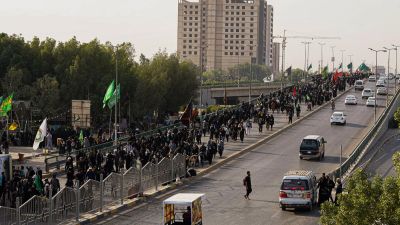 ودخل نحو مليوني إيراني العراق لزيارة مدينة كربلاء بمناسبة أربعينية الإمام الحسين وهو من أكبر التجمعات الدينية في العالم.
