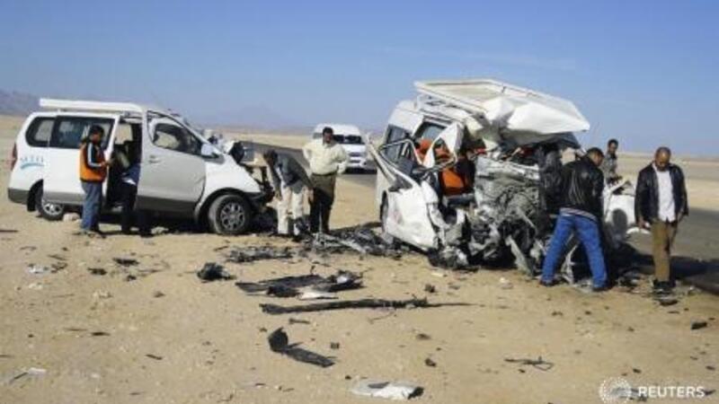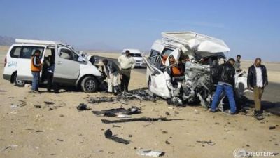 حافلة صغيرة تحطمت في حادث على طريق بمحافطة البحر الاحمر المصرية