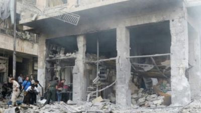 وشاهد مصور لوكالة فرانس برس في بلدة معرشورين في ريف ادلب الجنوبي التي استهدفها القصف مبان قد سُويت أرضاً ولم يبق منها سوى جبال من الركام، وأخرى إلى جانبها وقد انهارت جدرانها. وبدت بقع من الدماء على حجارة من بقايا المبان المستهدفة.