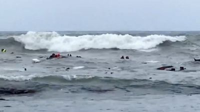 وذكرت إدارة الإطفاء والإنقاذ في سان دييغو – قرب الحدود مع المكسيك- أن رجال الانقاذ وخفر السواحل الأمريكي استجابوا لتقارير حول انقلاب قارب جراء الأمواج العالية بالقرب من شبه جزيرة بوينت لوما الصخرية حوالي الساعة العاشرة صباحا بالتوقيت المحلي.