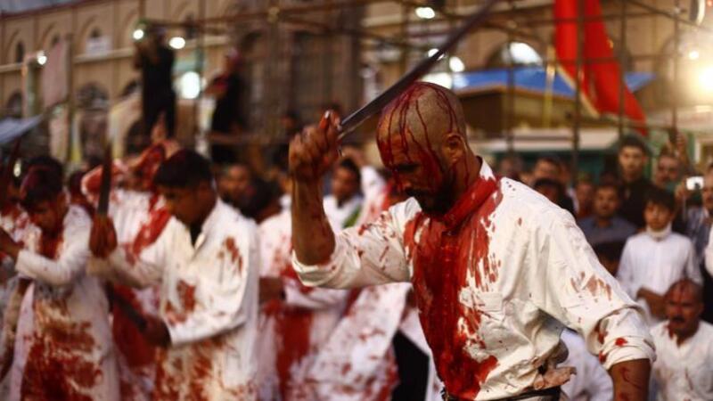 عراقيون تغطيهم الدماء خلال احيائهم ذكرى عاشوراء في النجف