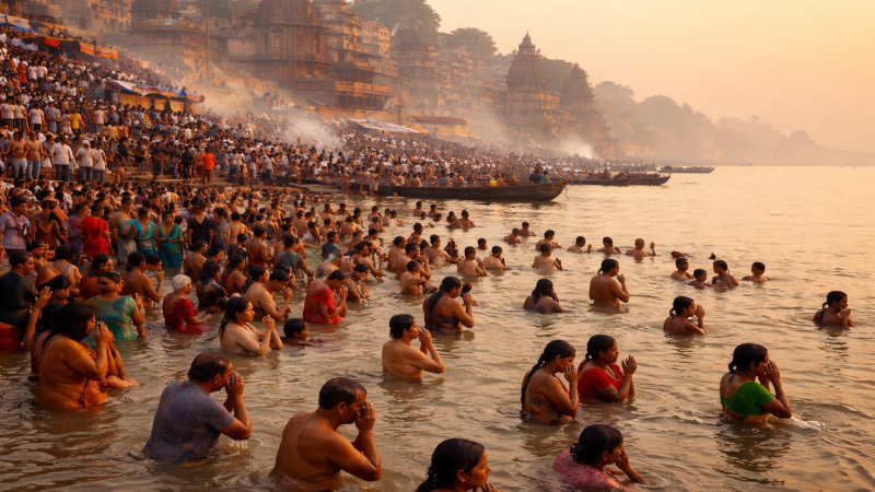 يستمر آلاف الهندوس يوميًا في الاستحمام في نهر الغانج، أحد أقدس الأنهار لديهم، حيث يُعتقد أن الماء يطهّر من الذنوب ويجلب البركة الروحية.