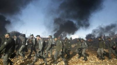 واضرم المستوطنون النار في اطارات السيارات التي تمت تغطيتها بالاسلاك الشائكة لمنع الوصول الى المبنى، ولكن شرطة مكافحة الشغب وعناصر حرس الحدود تمكنوا من ابعادهم.
