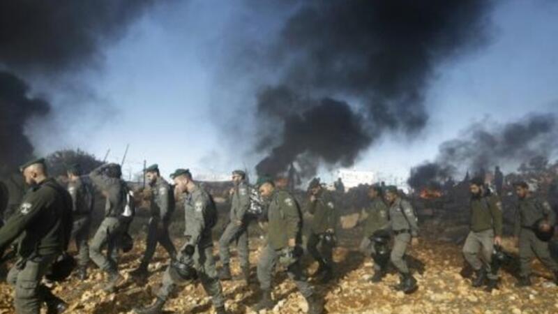 وقال مراسلون لوكالة فرانس برس ان مئات من المستوطنين تجمعوا في بؤرة نتيف هأفوت في كتلة عتصيون الاسرائيلية، وحصنوا انفسهم بورشة نجارة ورفضوا اوامر المغادرة طوعا.