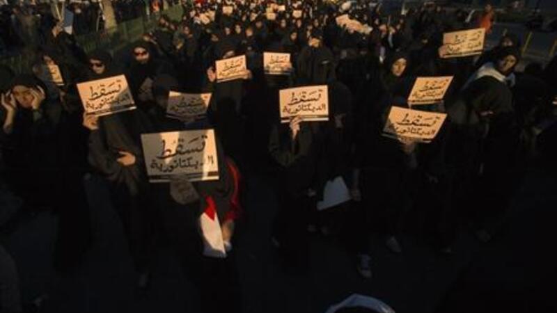 نساء في مسيرة مناهضة للحكومة في البحرين يوم الجمعة