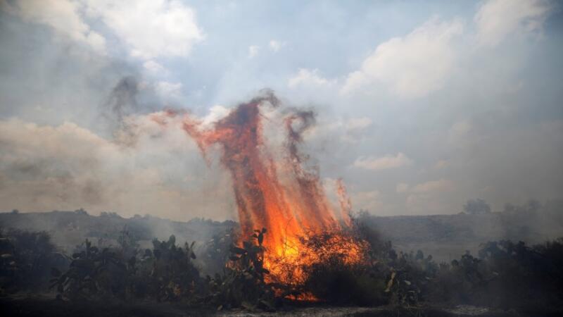 وفي الحقول القريبة من “كيبوتس بئيري” (قرية زراعية تعاونية تقع شرق وسط قطاع غزة)، تحاول أربعة طواقم إطفاء السيطرة على حرائق أشعلتها طائرة ورقية أطلقت من غزة وسقطت في أحد الحقول.