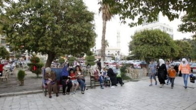 سوريون يتنزهون في حديقة عامة في دمشق في 21 ايلول/سبتمبر 2013