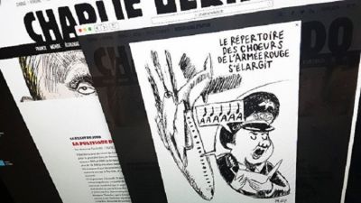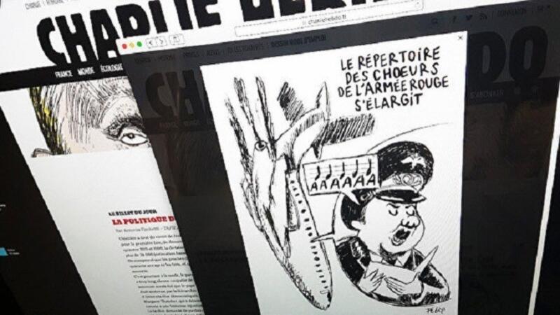 وكانت مجلة "شارلي إيبدو" نشرت الأربعاء 28 ديسمبر/كانون الأول رسما ساخرا يظهر طائرة وهي تهوي على خلفية صورة لعازف من فرقة ألكساندروف الموسيقية وهو يترنم بنغم، فيما ذيلت اللوحة بتعليق يقول "وصلات جوقة الجيش الأحمر تتسع".