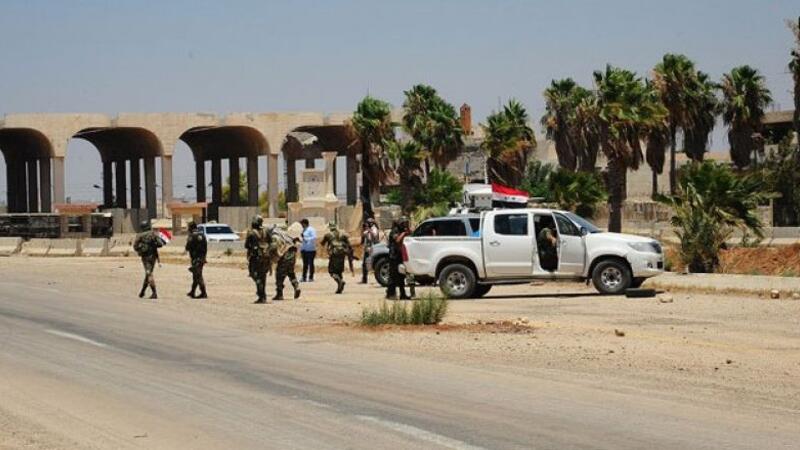جنود من الجيش السوري داخل معبر نصيب بعد استعادة السيطرة عليه