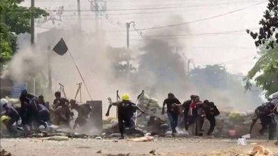 نشرت جماعة معارضة في ميانمار تسجيلا مصورا يظهر نحو 120 شابا يركضون في غابة موحلة في ساعة مبكرة من الصباح مرددين هتافات بلغة ميانمار تعبيرا عن استعدادهم للقتال "من أجل الشعب"