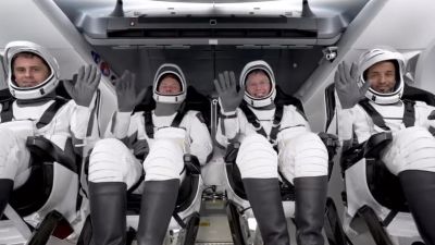 ونقلت صحيفة الامارات اليوم عبر صفحاتها على مواقع التواصل الاجتماعي فيديوهات وصور للرائد النيادي وهو يلوح مع ثلاثة من زملائه الاميركيين قبيل الانطلاق